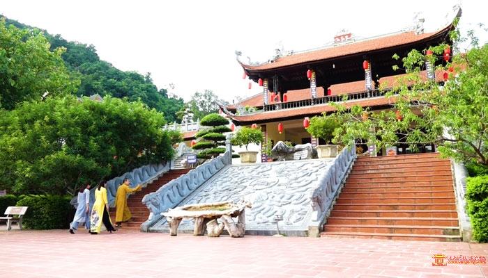 Trong khuôn viên chùa có trên 100 pho tượng và khoảng 1.000 cây xanh các loại, trong đó gần một nửa là những cây hoa đào, tạo nên không gian xanh mát và thanh tịnh.