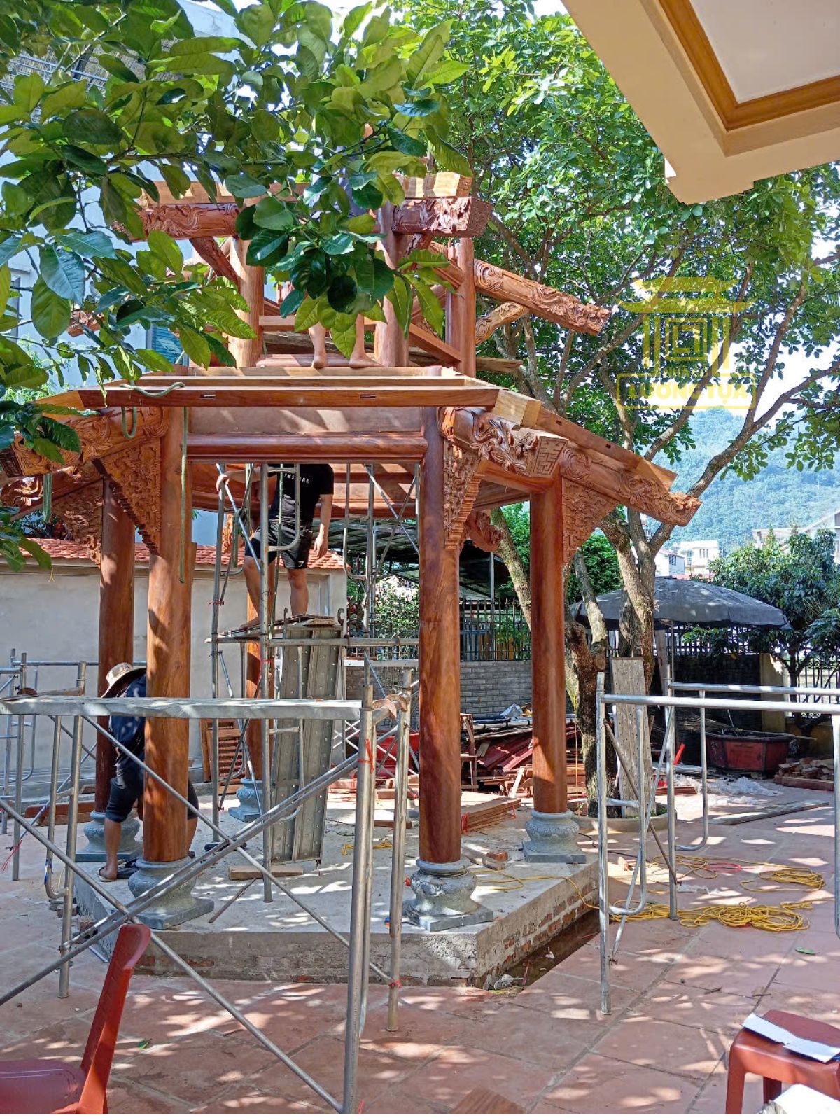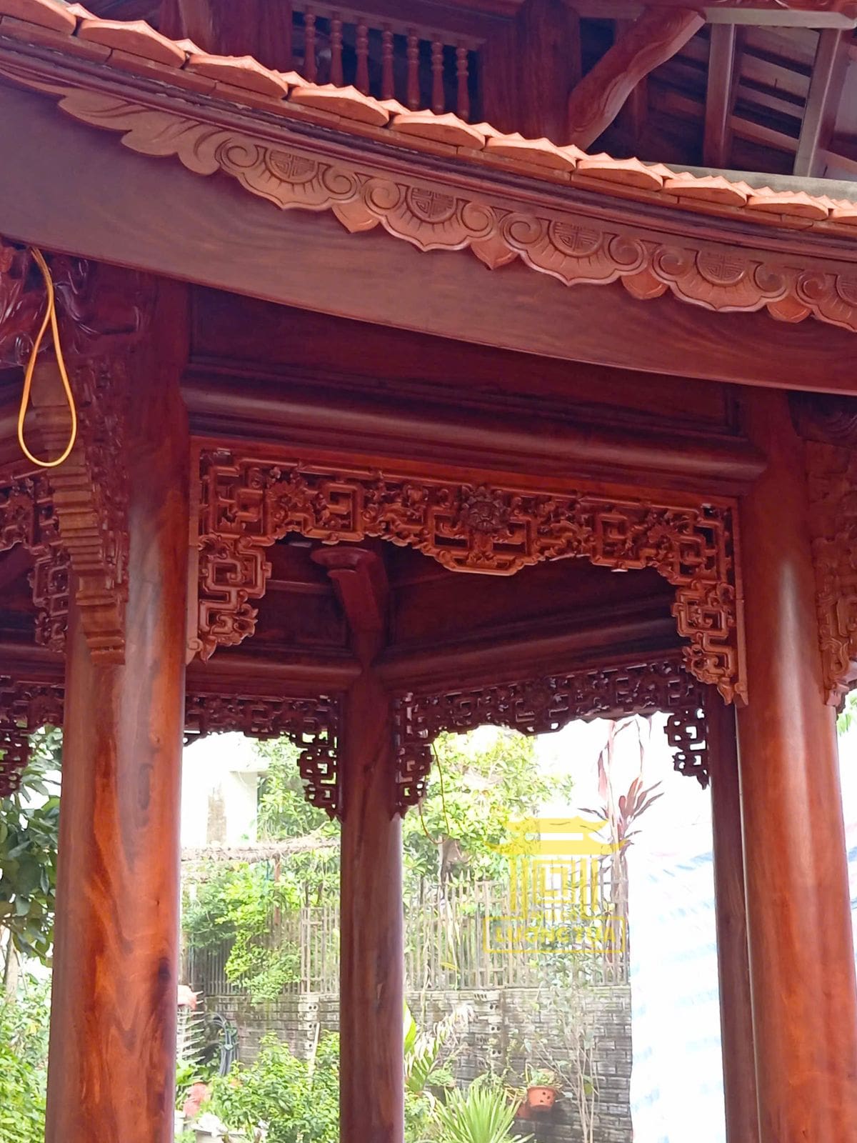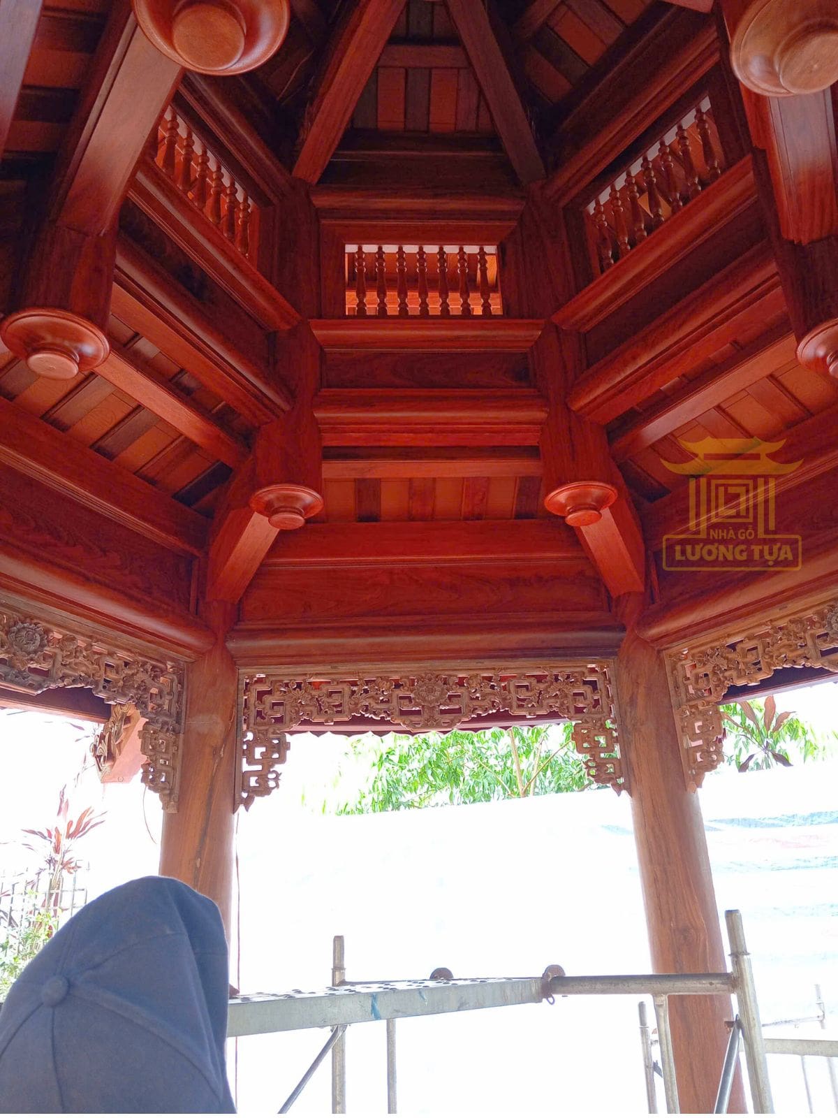 Thiết kế lầu lục giác gỗ lim dành cho sân vườn – mang đến không gian thư giãn, thưởng trà, thiền định đậm chất nghệ thuật và phong thủy. Kiến trúc 6 mặt cân đối, chạm khắc tinh tế.