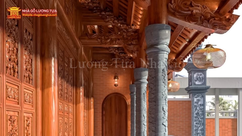 Trong văn hóa người Việt, từ đường – nhà thờ họ không chỉ là nơi thờ phụng tổ tiên, mà còn là biểu tượng cho sự bền vững, gắn kết và phát triển của một dòng tộc. Mẫu từ đường 3 gian mà Nhà Gỗ Lương Tựa giới thiệu dưới đây được thi công bằng gỗ lim Lào loại 1 – kết hợp cùng hệ cột hiên đá xanh chạm tay bền vững chịu nắng mưa tốt.