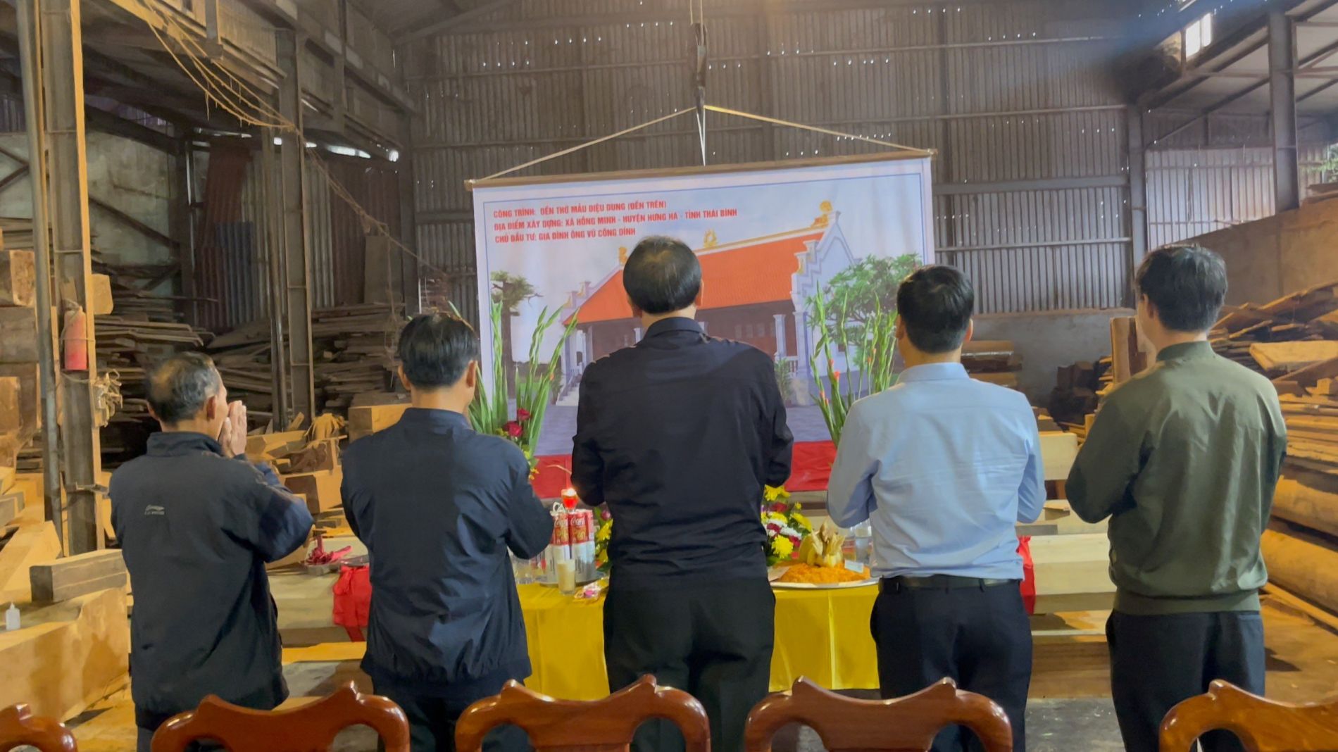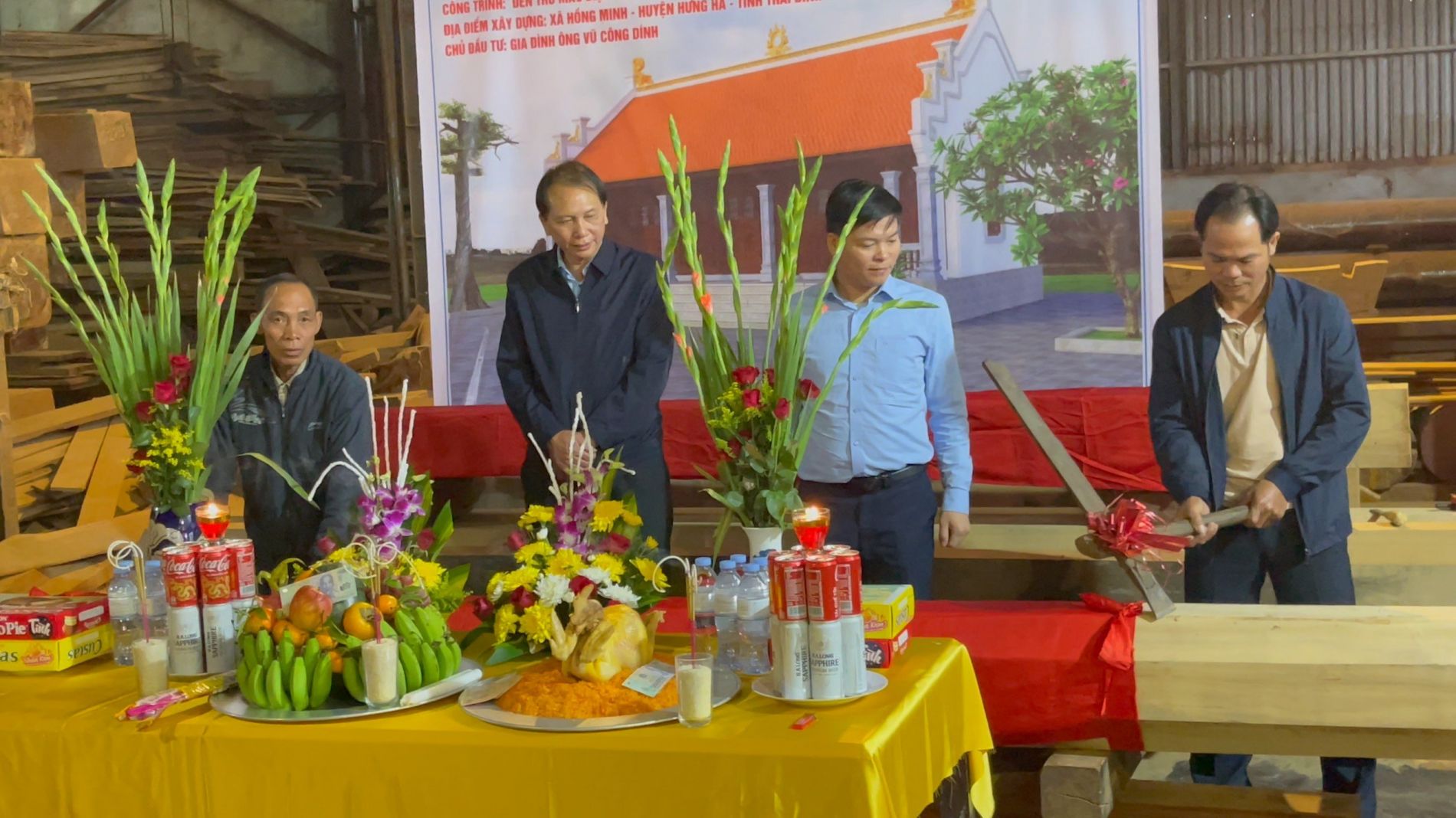 Ngày giờ để tổ chức lễ phạt mộc được gia chủ của chúng tôi là gia đình ông Vũ Công Dính đã xem xét và chọn lựa rất kỹ càng để xây dựng công trình Đền thờ Mẫu Diệu Dung (hay còn gọi là Đền Trên). Đó là những giờ đẹp, ngày lành, tháng tốt phù hợp với tuổi, vận mệnh của gia chủ. Vào ngày 03/12/2023 tức ngày 21/10 (âm lịch) năm Quý Mão. Nghi lễ phạt mộc Ngôi nhà gỗ 3 gian với chất liệu chính là gỗ Lim Lào, có địa điểm xây dựng tại Thôn Cổ Trai, Xã Hồng Minh – Huyện Hưng Hà – Tỉnh Thái Bình, được diễn ra tại chính xưởng nhà gỗ Lương Tựa là đơn vị thi công làm nhà gỗ cổ truyền.