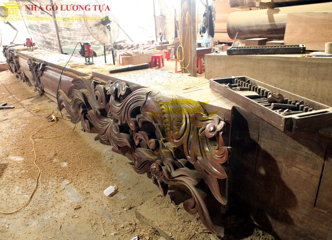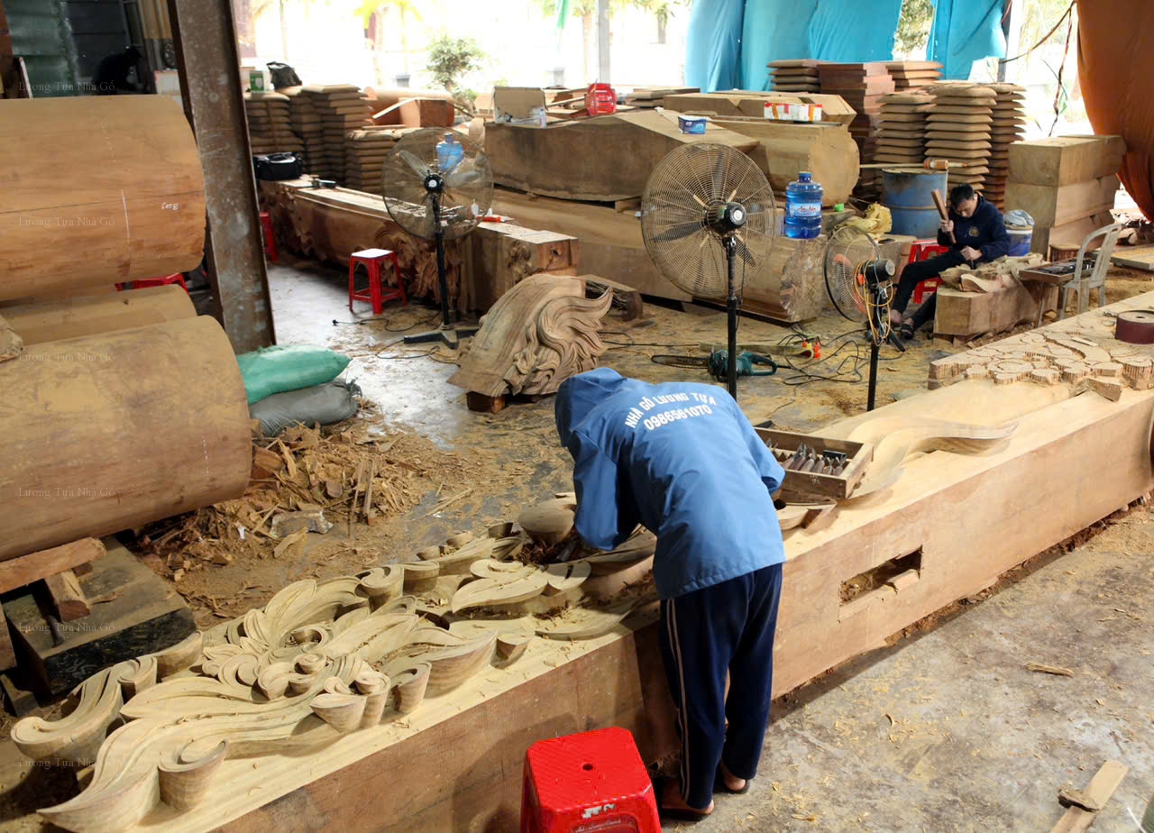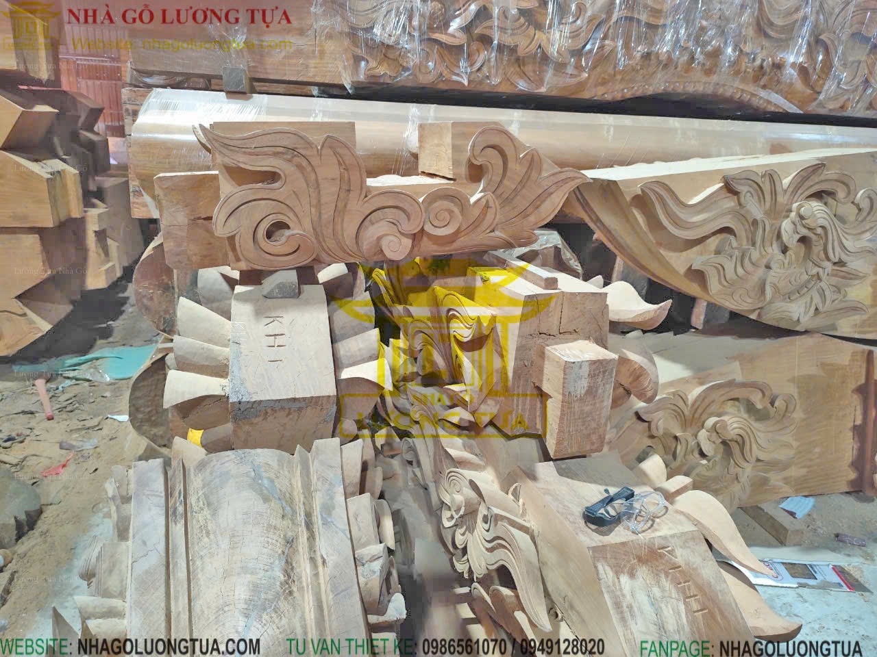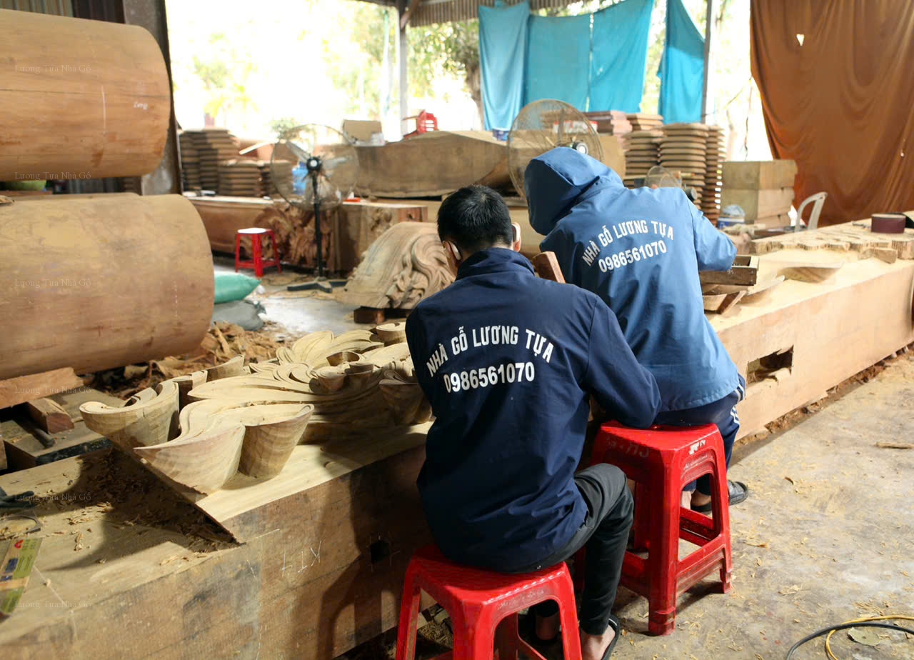 Khi bước vào xưởng, trước mắt chúng ta là cảnh các bác thợ thi công công trình đang miệt mài làm việc với sự tập trung cao độ. Các cấu kiện của ngôi thánh đường như: cột, kèo, xà v.v. đang được các bác thợ ghép mộng rất chặt chẽ, thể hiện kỹ thuật và trình độ tay nghề cao, cùng sự am hiểu sâu sắc về gỗ. Đặc biệt, các nghệ nhân của Nhà gỗ Lương Tựa đã từng có kinh nghiệm thi công những nhà thờ công giáo trước đây, như nhà thờ giáo xứ Xương Điền, Giáo xứ Tân Bồi, Giáo xứ Thịnh Long … Vì vậy, chúng tôi hiểu rằng mỗi cấu kiện phải được liên kết chặt chẽ và phải thật khăng khít với nhau. Bên cạnh đó, các chi tiết nhỏ như con bò, xà lách, bẩy…cũng được chú trọng, để việc trạm trổ đạt được sự tinh xảo và sắc nét. Nhìn tổng thể phần mộc ngôi thánh đường đã và đang hoàn thiện được khoảng 50%. Và chúng tôi cũng đang cố gắng làm việc mỗi ngày một cách nhanh nhất, chính xác, an toàn và hiệu quả.
